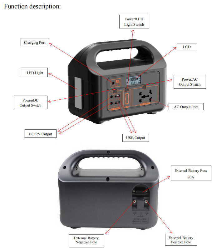 5. If the portable power station device is disassembled and used at low temperature, water condensation may occur. It must be used until the inside and outside of the device are completely dry, otherwise there will be a danger of electric shock.