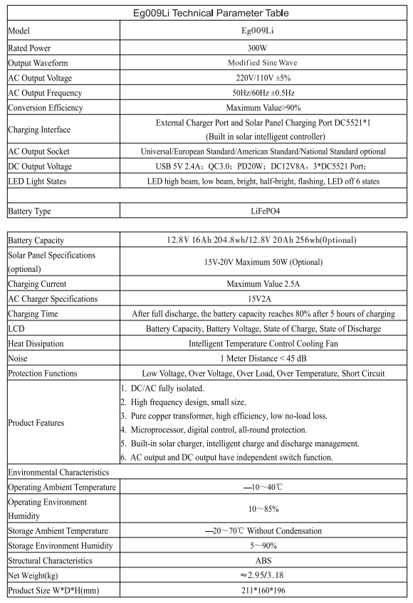 1*Portable Power Station; I*AC Adapter Charger; I*User Manual; 1*Qualified Certificate;